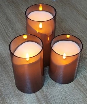 3 grijze plastic kaarsen Deze kaarsen branden natuur getrouw en lijken
