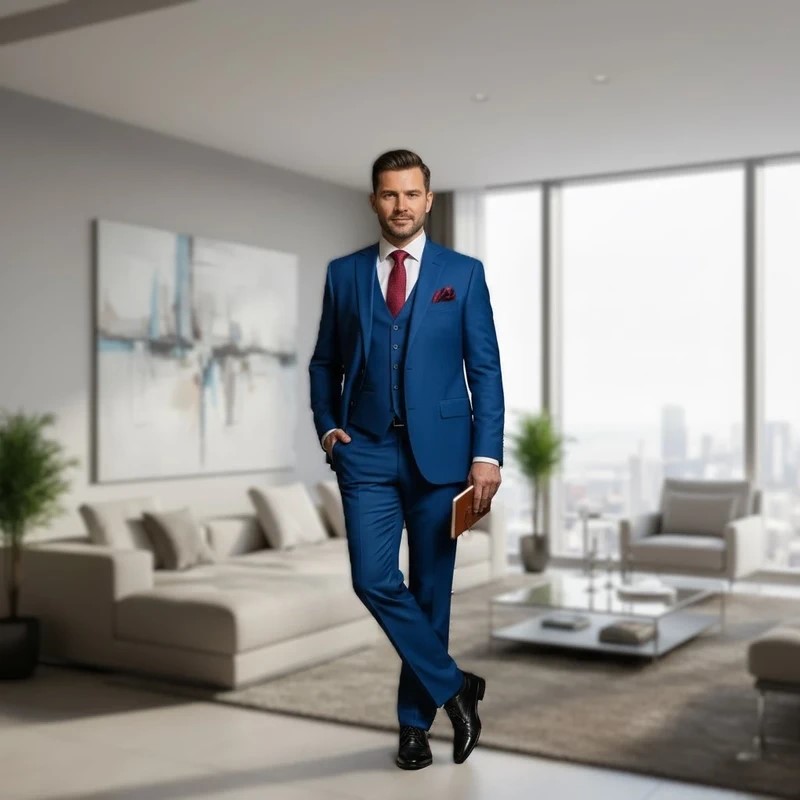 driedelig koningsblauw pak
